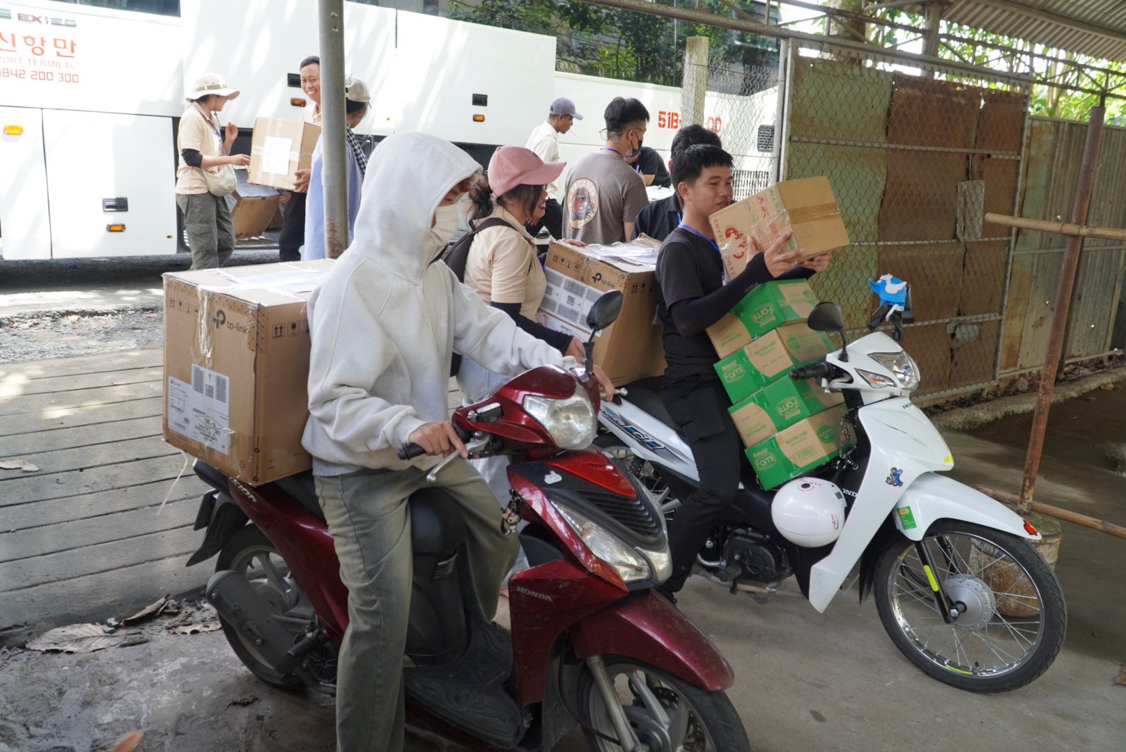Hơn hai trăm phần quà được trao đi, từng đôi tay nhỏ ôm lấy chiếc bánh, chiếc đèn như ôm cả niềm vui trọn vẹn…