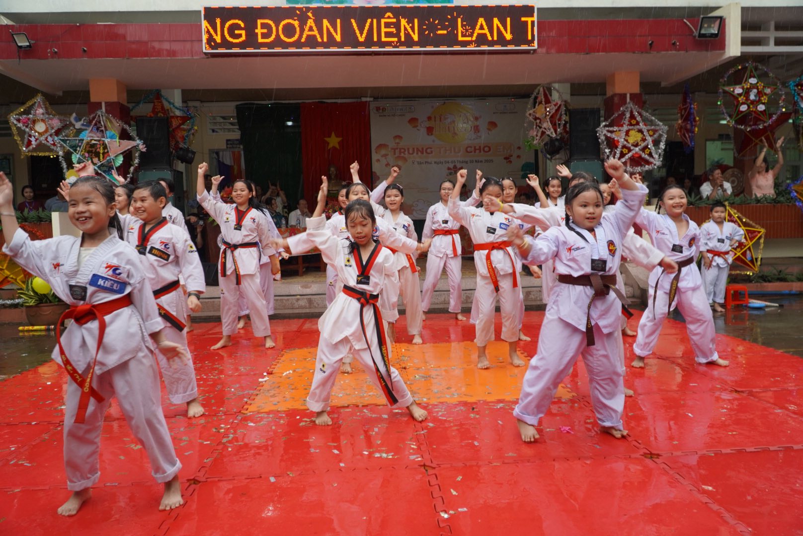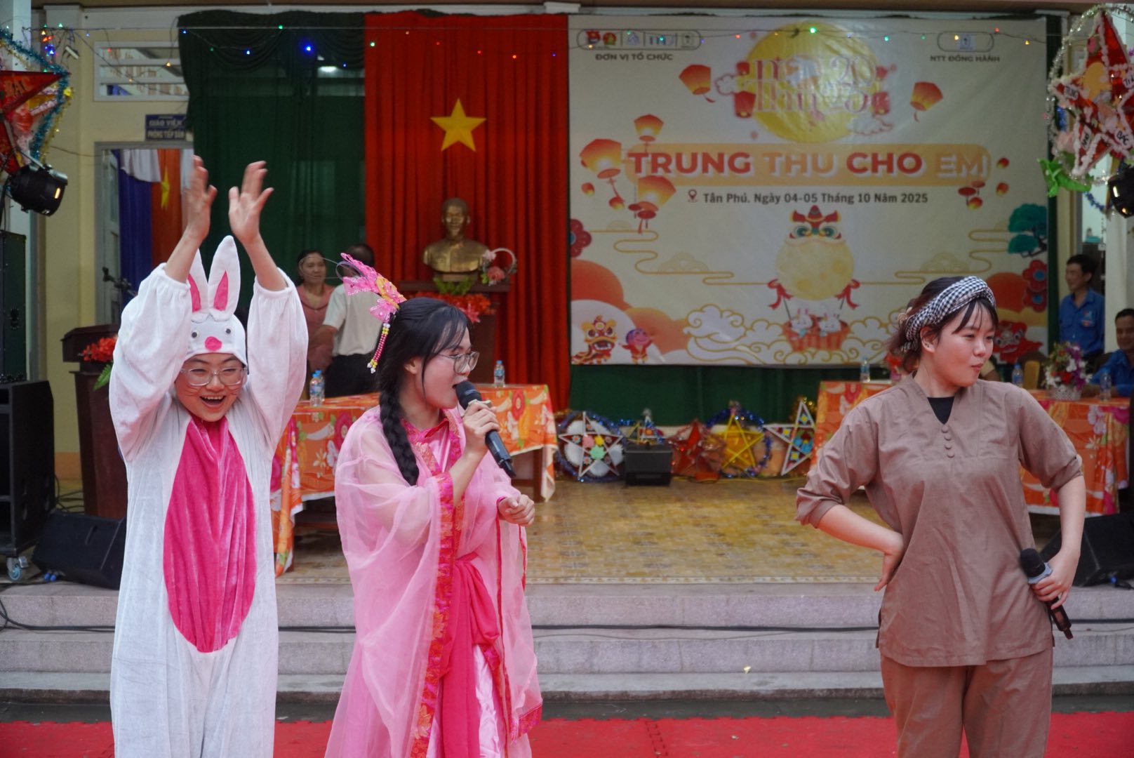 Dưới sự tham gia của ban lãnh đạo nhà trường và Uỷ Ban Xã Tân Phú, đoàn chúng mình đã cùng các bé học sinh cùng nhau tham gia một chương trình đầy niềm vui và ý nghĩa… Những tiết mục múa hát hồn nhiên, những bước chân nhảy múa trên nền nhạc vui tươi, và sự xuất hiện đầy duyên dáng của chú Cuội, chị Hằng, Thỏ Ngọc — như gom hết tuổi thơ vào trong từng khoảnh khắc.